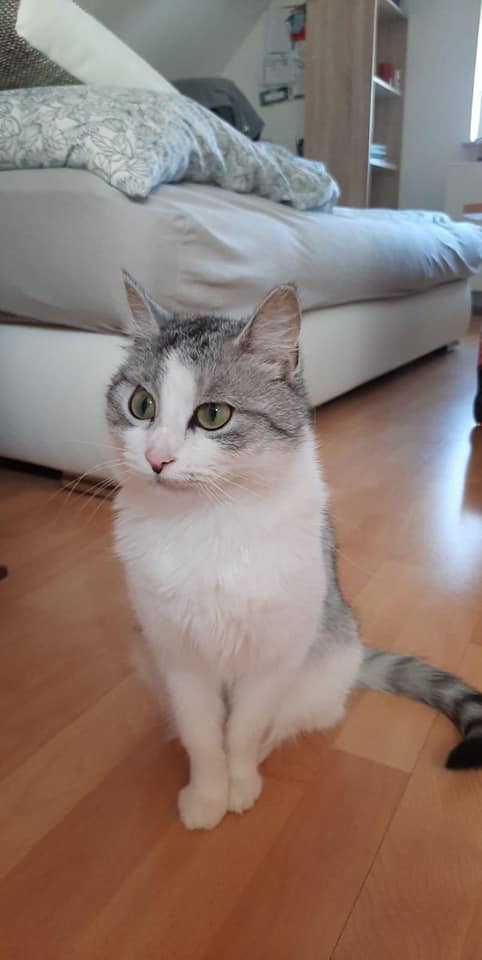 Schaut Mal zu was für einer wunderschöne Katze sie herangewachsen ist! Sie kommt in der Wohnung gut zurecht und erkennt Schattenspiele, also hell und dunkel.