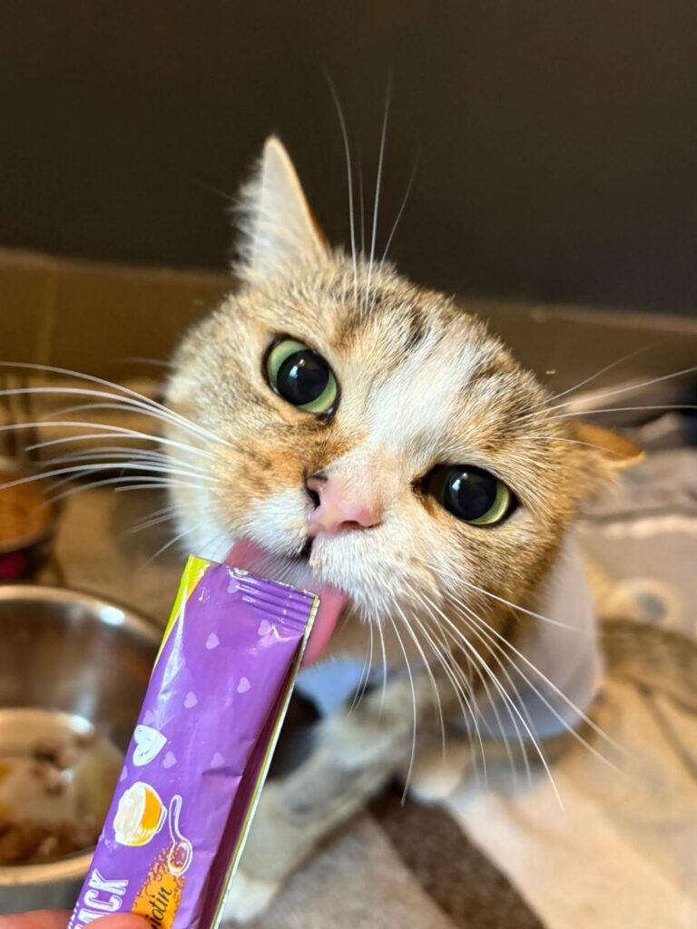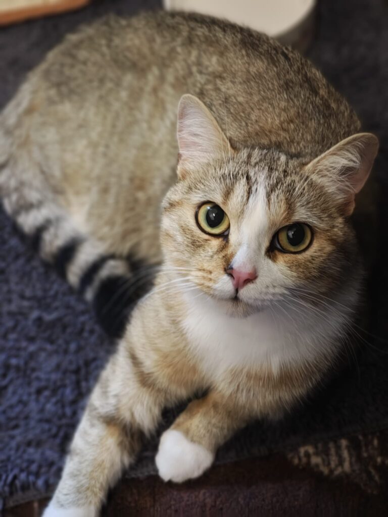 Cookie kam mit ihren 2 Kitten als Fundkatze zu uns. Schnell bemerken wir, dass sie der Meinung ist, ihre Söhne sind schon alt genug um alleine zurecht zu kommen. Bei Annäherungsversuchen von den beiden, reagiert sie oft gestresst und man sieht, dass sie eigentlich keine Lust mehr auf die Mama Rolle hat. Viel lieber würde sie die gesamte Aufmerksamkeit auf sich selbst ziehen und schnurrt wie eine Weltmeisterin wenn sie gestreichelt wird.