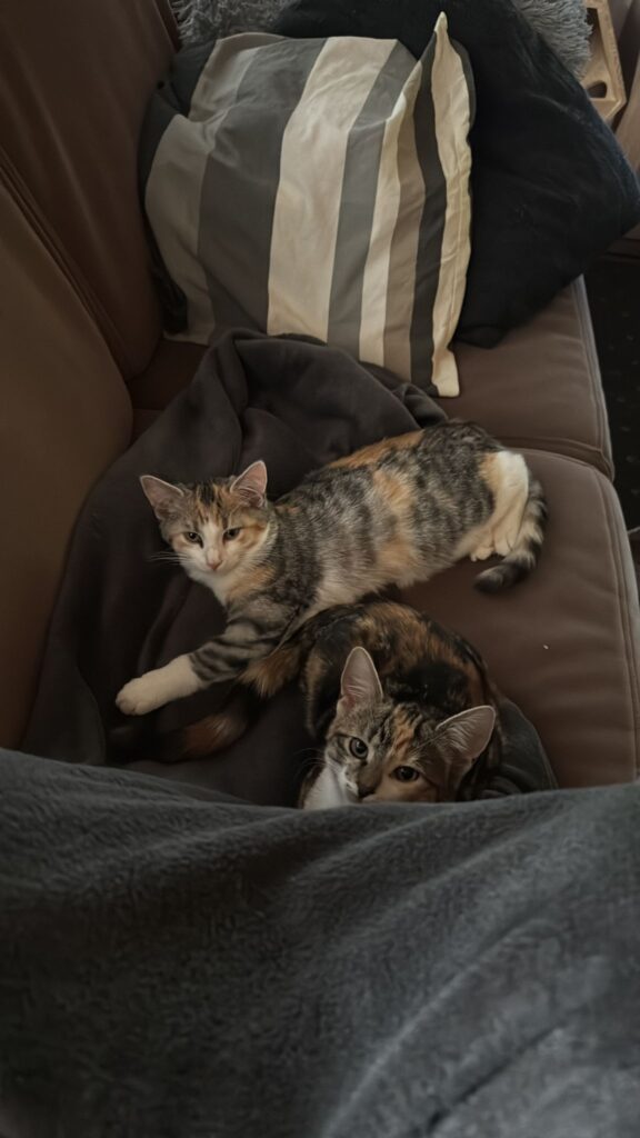 Ich wollte euch ein kurzes Update zu meinen beiden Kitten Nala und Zuri (Nala ist die Helle, Zuri die dunkle) geben. Die beiden haben sich super in ihr neues Zuhause eingelebt. Sie toben hier total gerne durch die Wohnung und sind unfassbar neugierig. Zuri liebt es auf ihrem kratzbaum nachmittags die Sonne und ihre Streicheleinheiten zu genießen. Nala ist noch etwas vorsichtig was Berührungen angeht, aber genießt das gekrault werden auch hin und wieder mal 😊