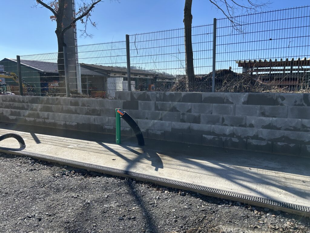 Die Mauer hinter dem neuen Kaninchengehege nimmt Gestalt an und ist bestimmt bald fertig.
